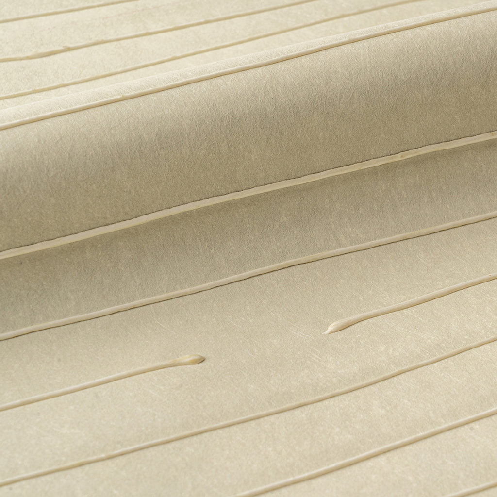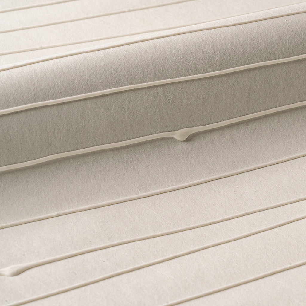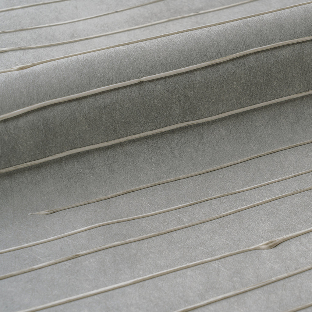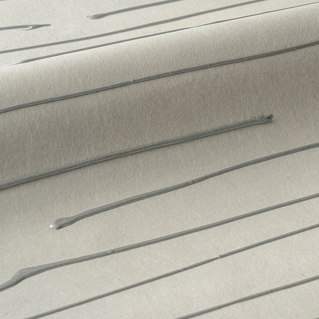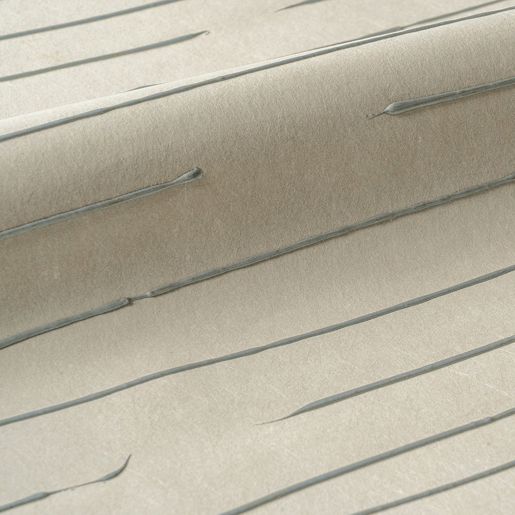 Textural, colorful lofted inks move horizontally across a field of translucent fibrous non-woven in this unique wallcovering. The sculptural artisanry of hand-applied inks add a distinctive touch which invokes images of studies in fine art.
