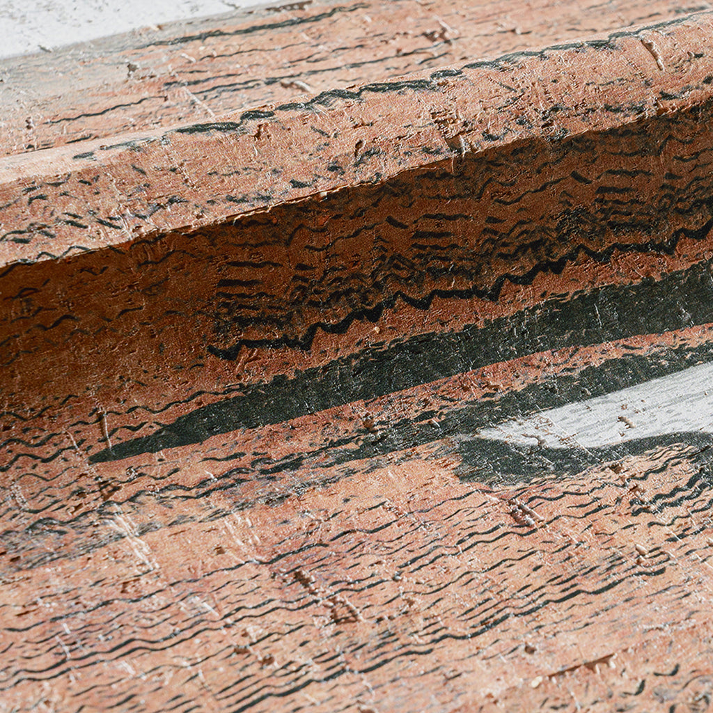 Evocative shapes of primitive origins inspired this abstract landscape. This two-panel mural is printed on natural cork with metallic foil backing. This design can be paired with Navaro.