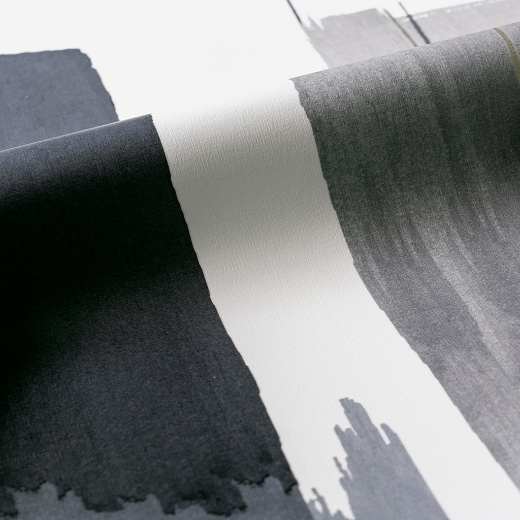 An accent of mylar creates surging motion against a geometric color study to form an urban abstract statement. Distinctive contemporary color stories provide a pastiche of brushwork counterbalanced by interactive light play on high-performance vinyl.