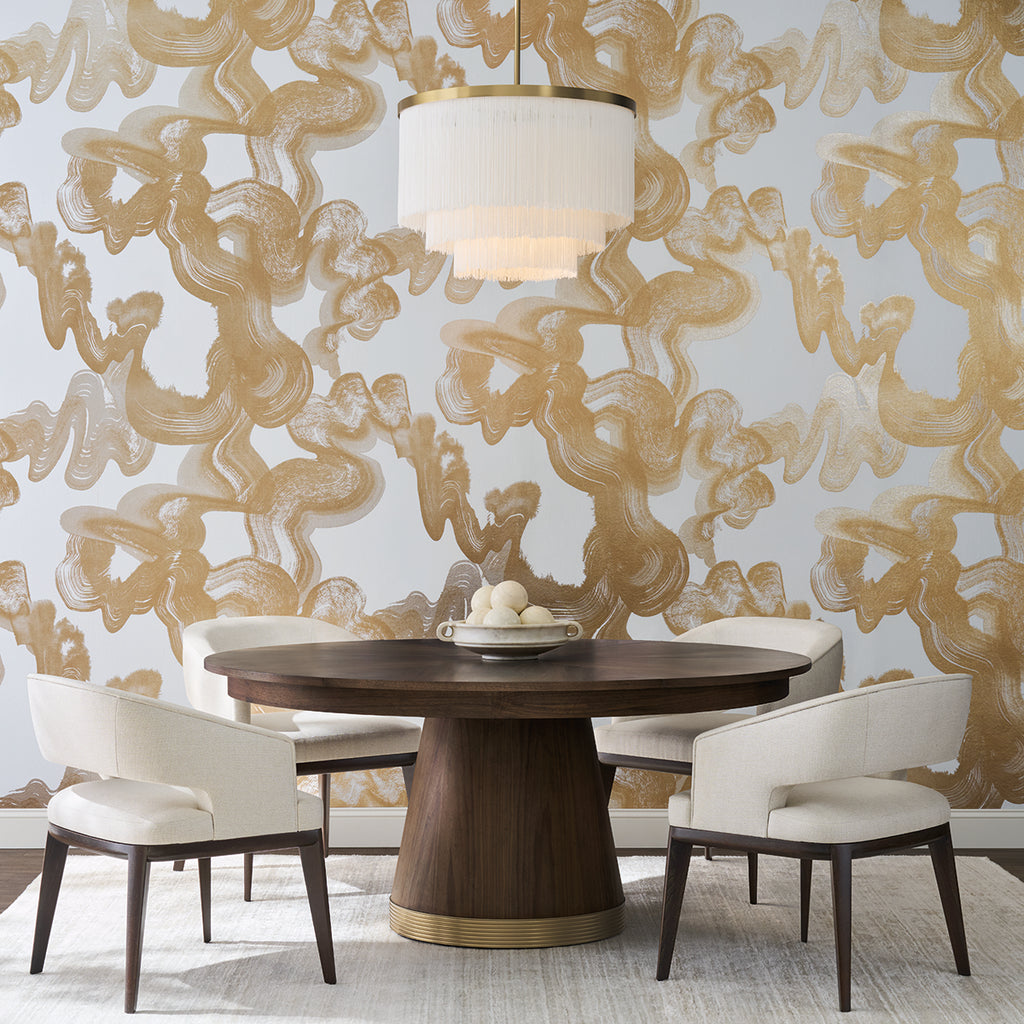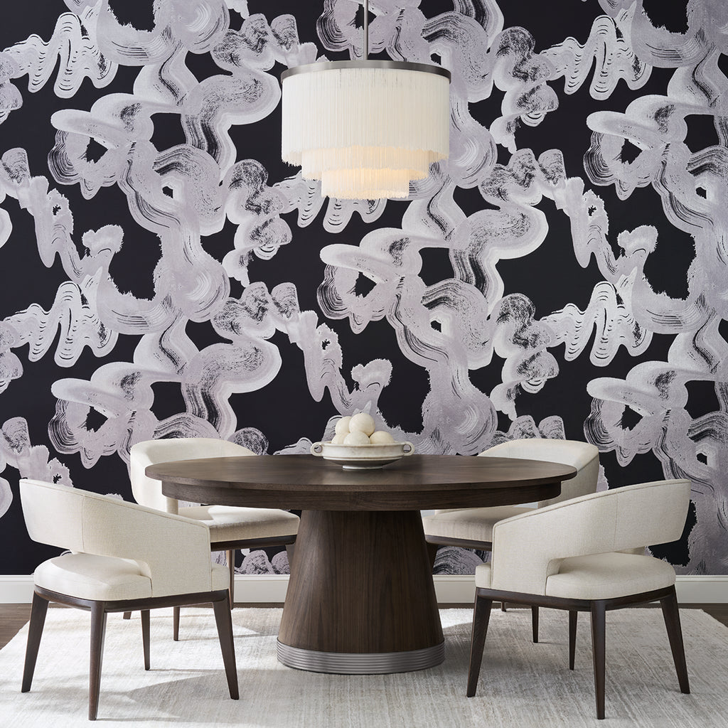 A dramatic design of dancing brushstrokes creates a contemporary abstraction emulating the sophistication of a gallery wall installation. This high-performance pattern offers a selection of soft tonal or bold contrasting colors, bringing spectacular inspiration to interior spaces.